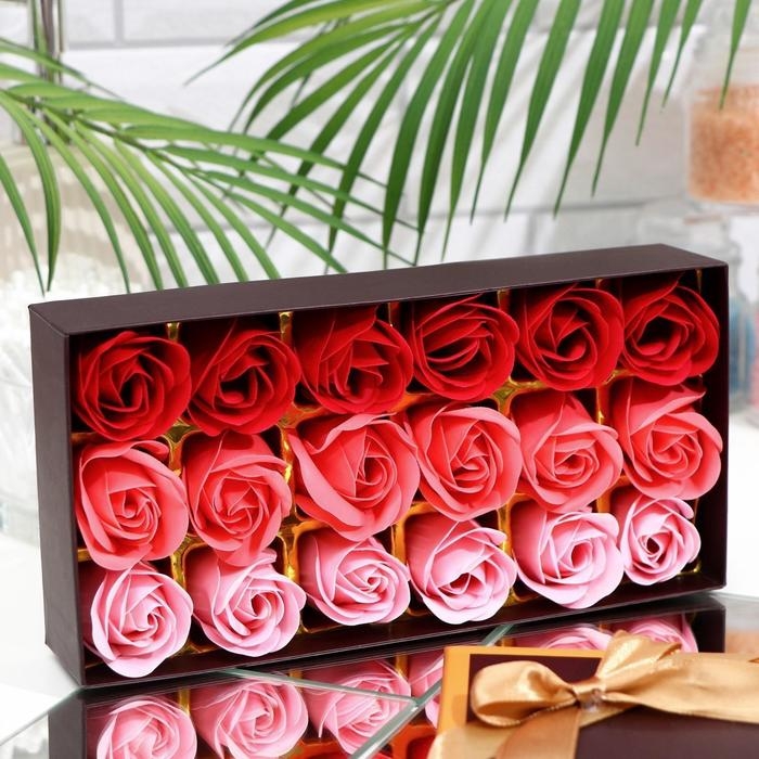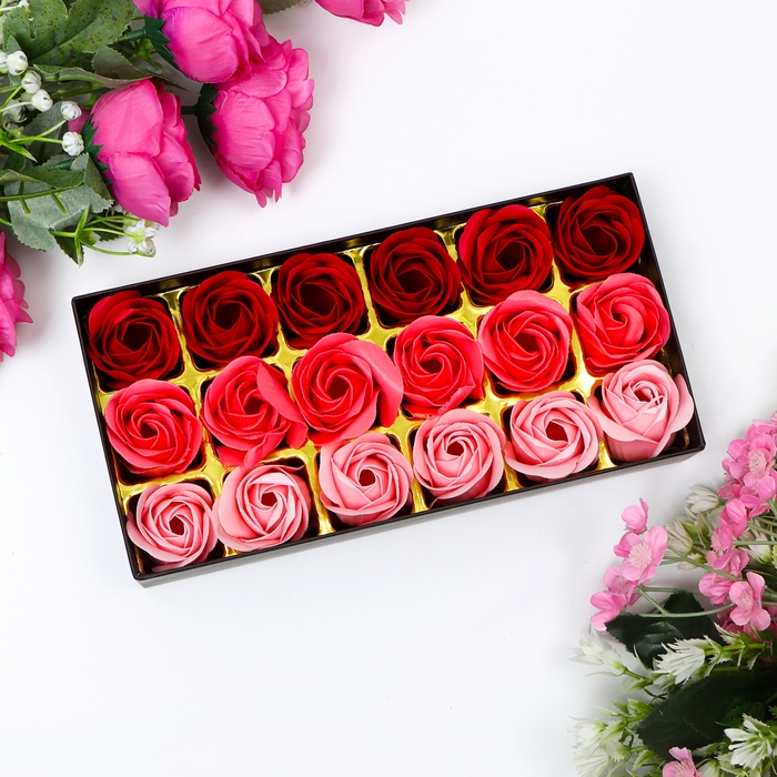 Мыльные розочки, цветные оттенки, набор 18 шт.