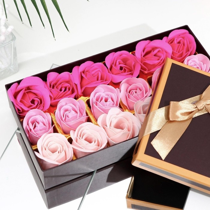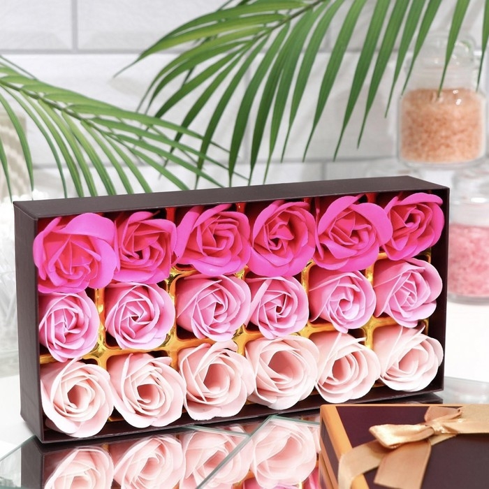 Мыльные розочки, цветные оттенки, набор 18 шт.