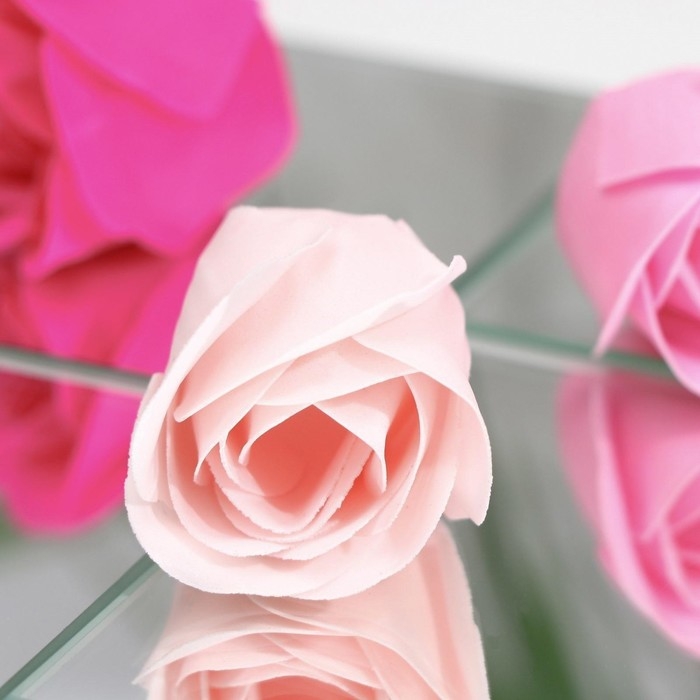 Благодаря точному повторению мелких деталей мыльные розы схожи с настоящими цветами. Композиция наполняет помещение тонким и ненавязчивым цветочным ароматом.