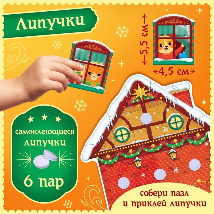 Пазл с липучками «Новогодний дом», 6 липучек, 28 деталей