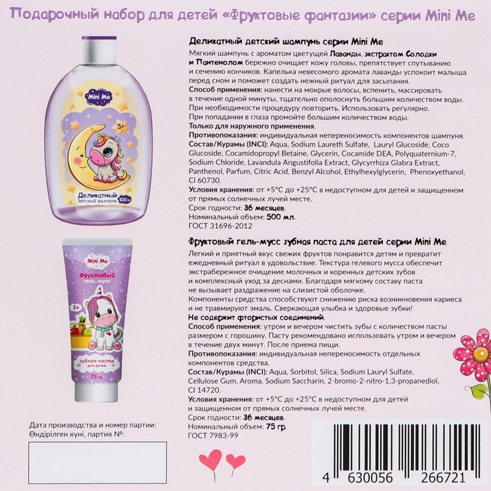 Подарочный набор косметики детский Mini Me: деликатный шампунь, 500 мл + зубная паста, 75 г
