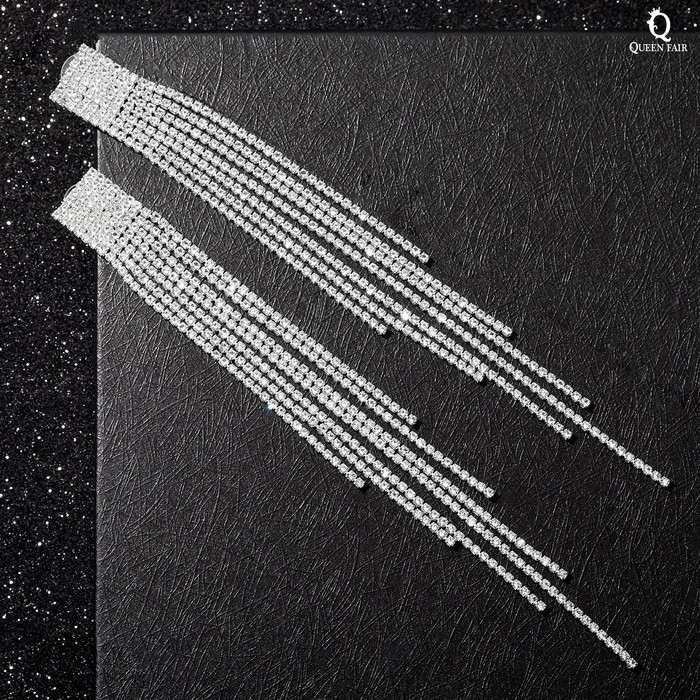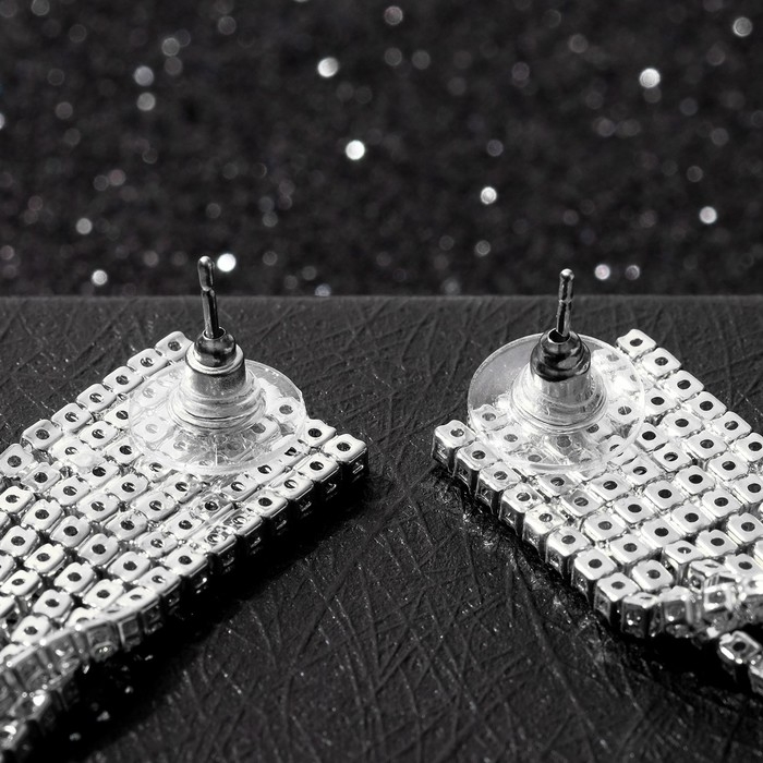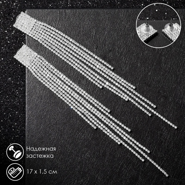 Серьги висячие со стразами «Водопад» ступенчатые, цвет белый в серебре, 17 см