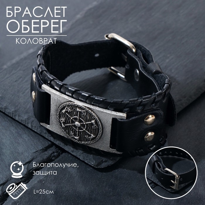 Браслет-оберег «Коловрат» круг, цвет чёрный с чернёным серебром, 25 см