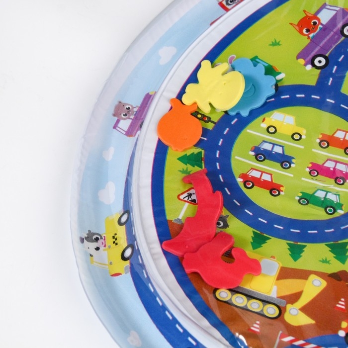 Акваковрик надувной развивающий водный коврик «Транспорт», 65x65 см, Крошка Я