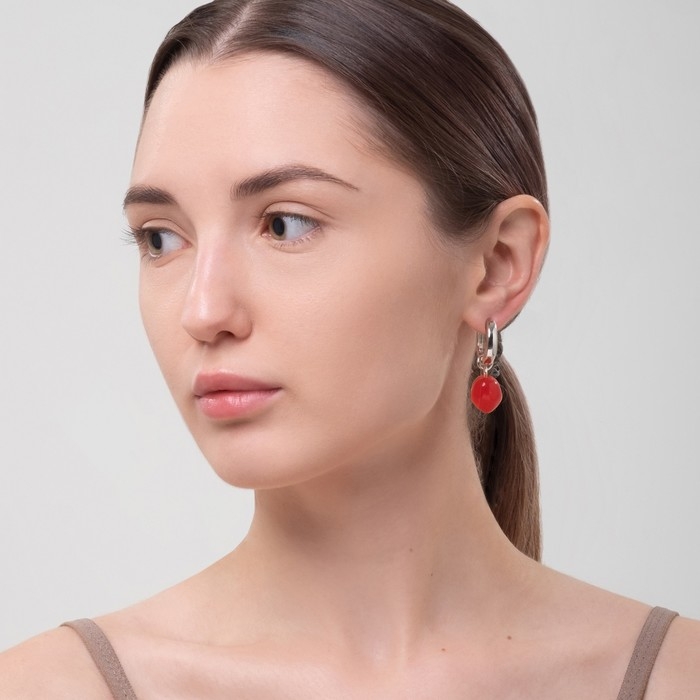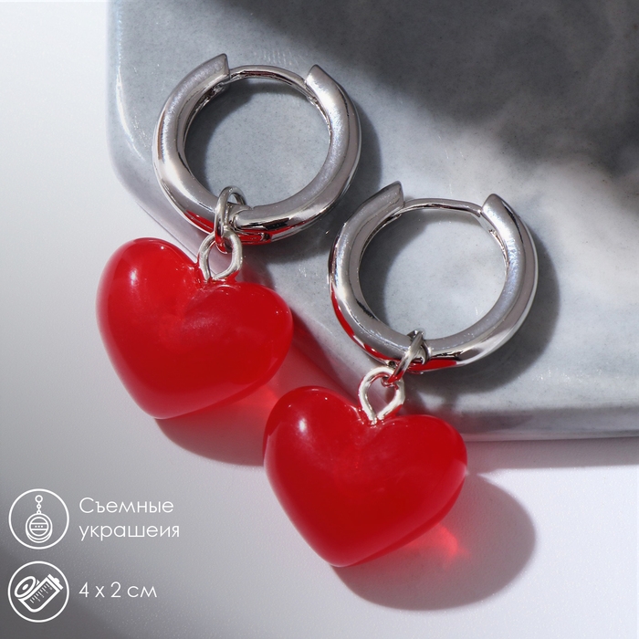 Серьги со съёмным элементом «Трансформер» сердечки, цвет красный в серебре