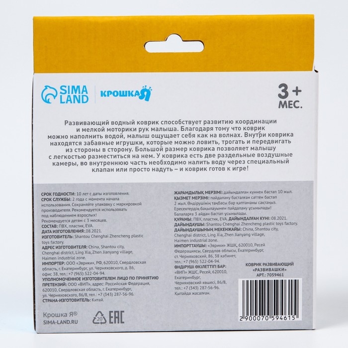 Акваковрик надувной развивающий водный коврик «Развивашки», 65x65 см, Крошка Я