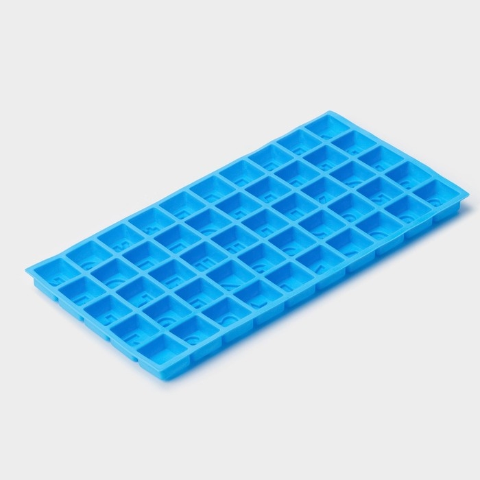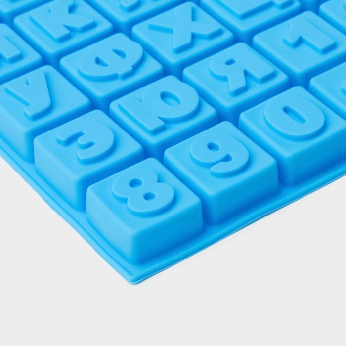 Форма для шоколада Доляна «Алфавит и цифры», силикон, 50 ячеек, 35×18,5×2 см, цвет синий