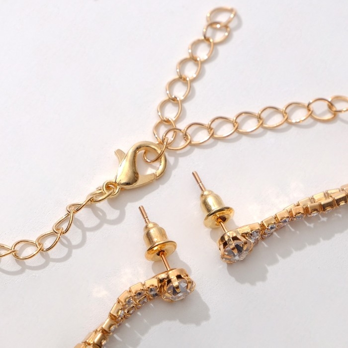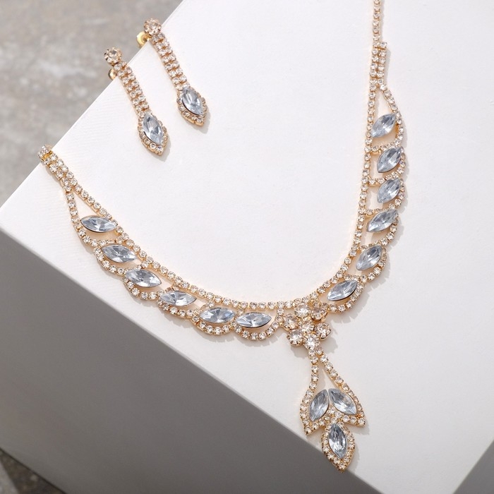 Набор 2 предмета: серьги, колье «Листопад» ромб, цвет белый в золоте, 45 см