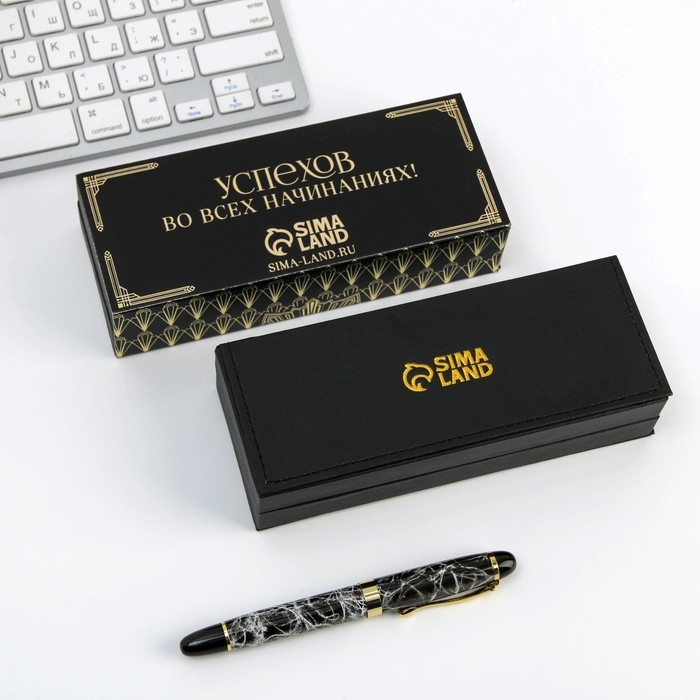 Ручка подарочная в футляре кожзам «Удачи во всем!», синяя паста 1.0 мм