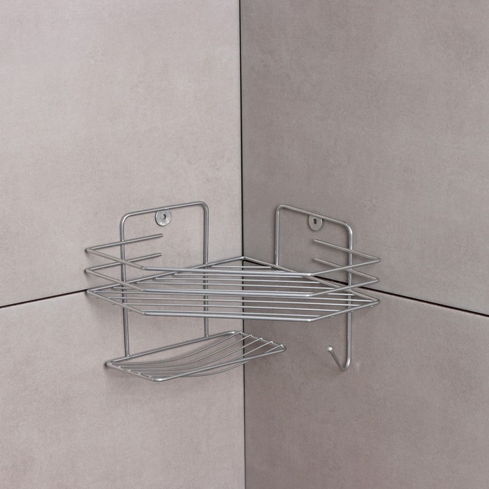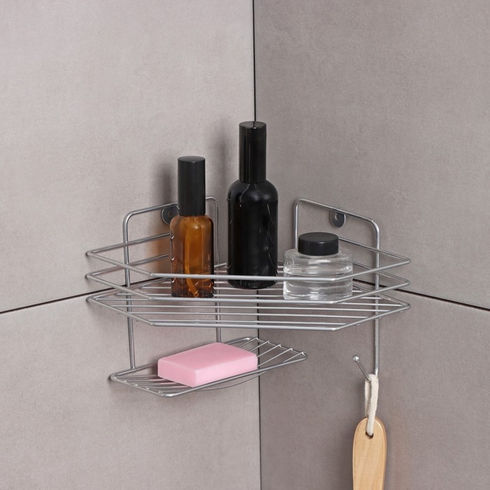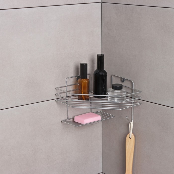 Полка настенная, с мыльницей, 20×20×15,5 см, цвет хром