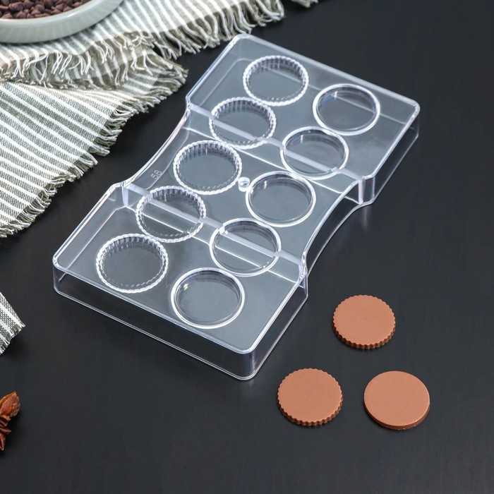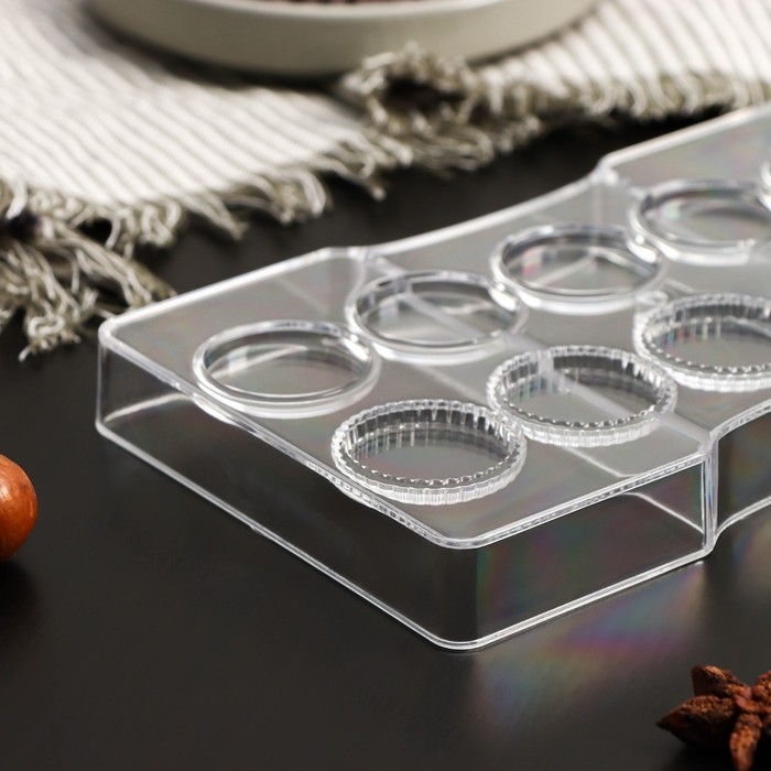 Форма для конфет и шоколада KONFINETTA «Медаль», 20×12×2,5 см, 10 ячеек 3,3×0,4 см, цвет прозрачный