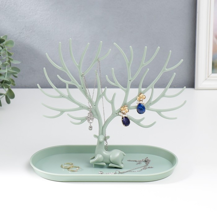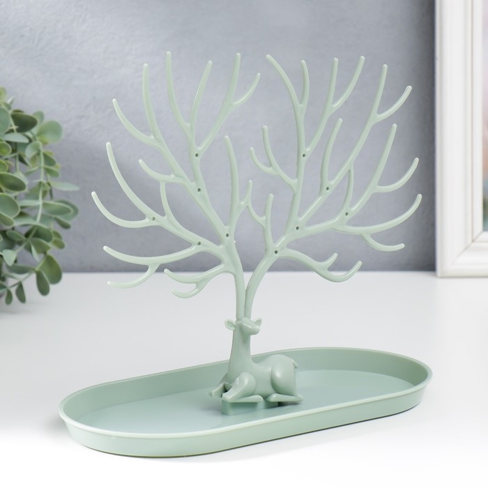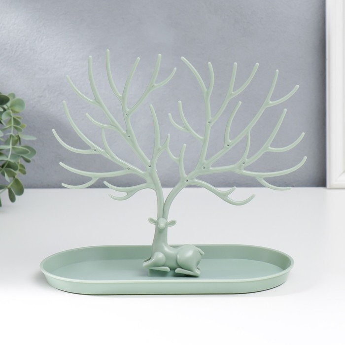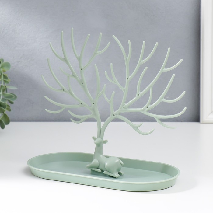 Подставка для бижутерии пластик "Олень с ветвистыми рогами" зелёный 21,5х12,5х24,5 см