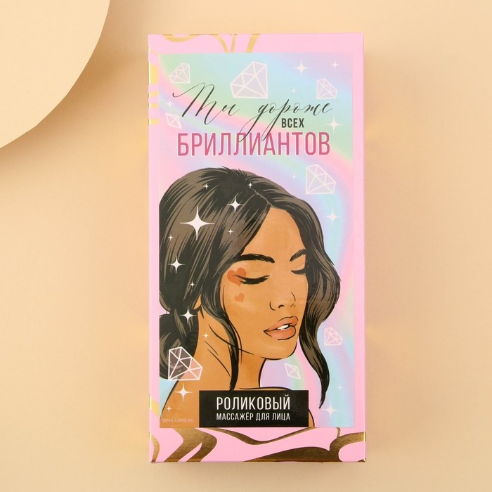 Массажер для лица роликовый, 3D «Ты дороже всех бриллиантов», 16 х 8 см