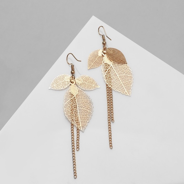 Серьги висячие «Листья» осень, цвет золото, 10,5 см