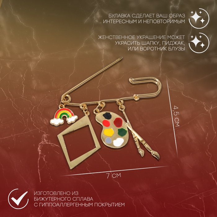 Булавка «Художник» 7см, цветная в золоте