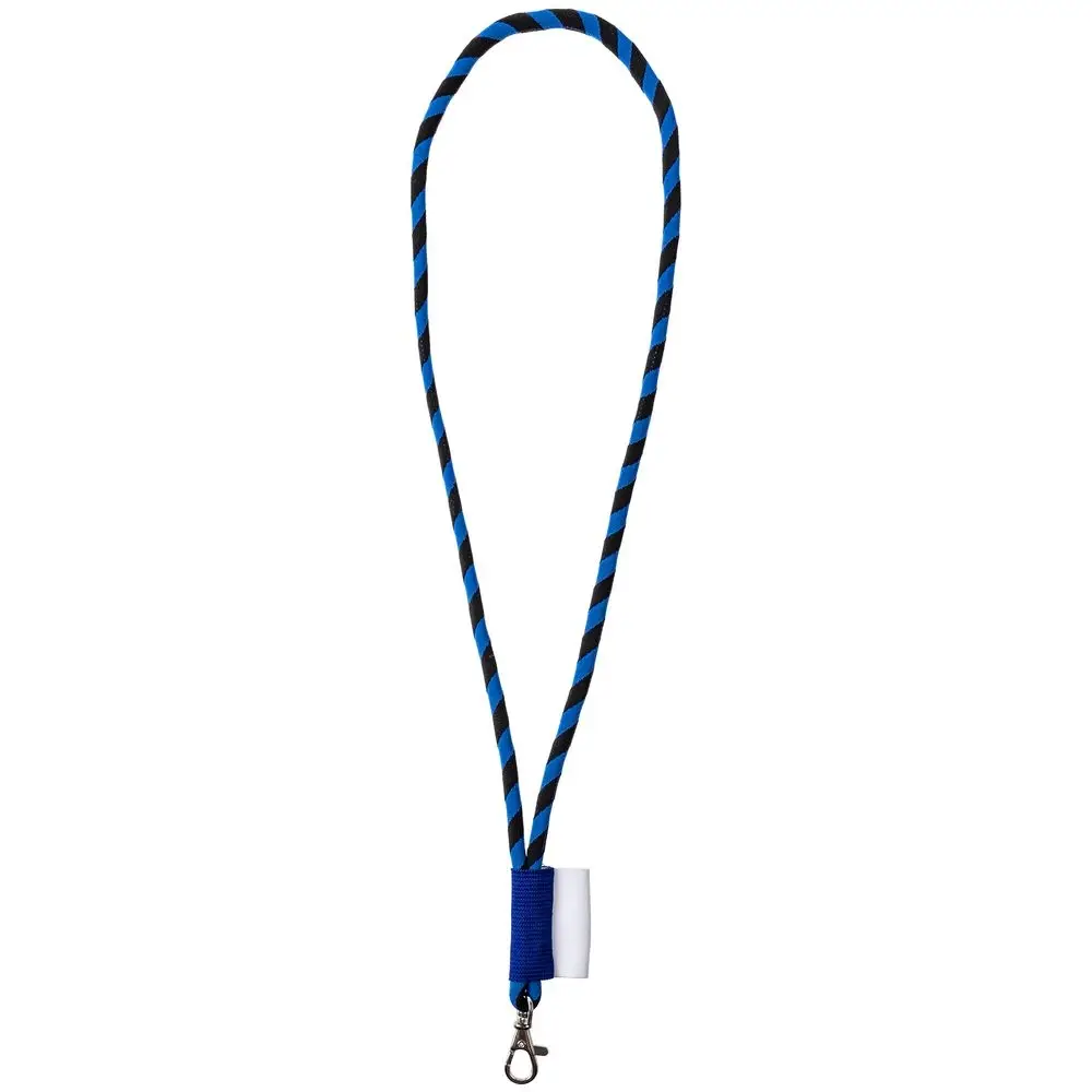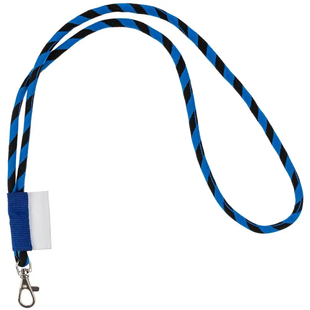Шнурок дополнен резинкой с биркой под печать и металлическим карабином.