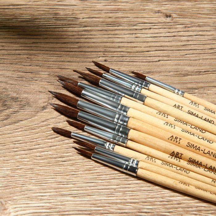Кисть для рисования набор 12 шт. белка «Живу ради искусства» № 1, 2, 3, 4, 5, 6, 7, 8, 9, 10, 11, 12