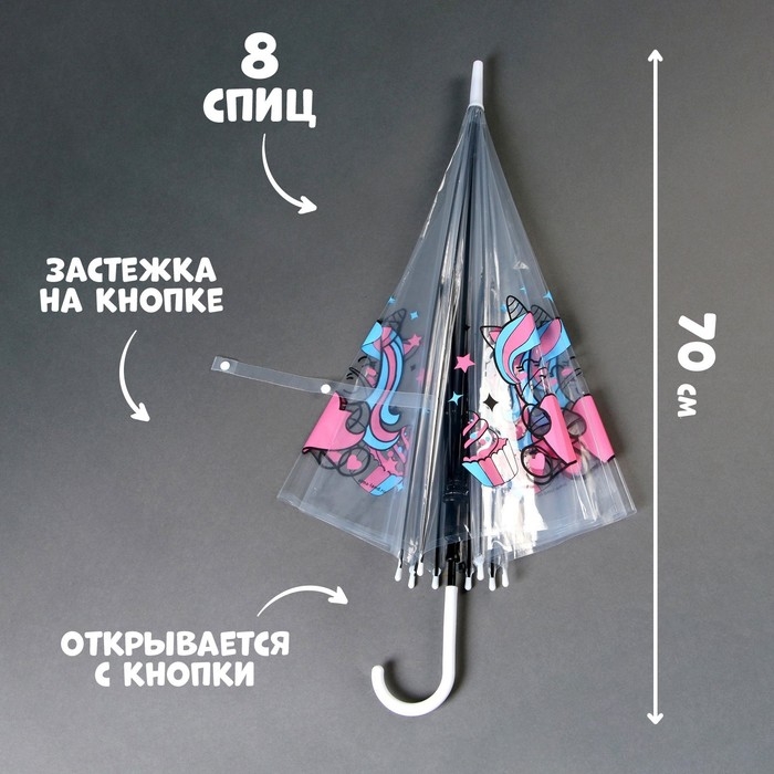 Зонт детский «Единорожка» полуавтомат прозрачный, d=90см