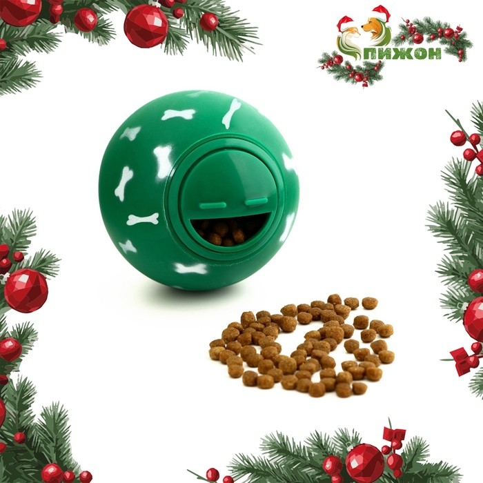 Игрушка-шар под лакомства "Косточки", 8 см, зелёная
