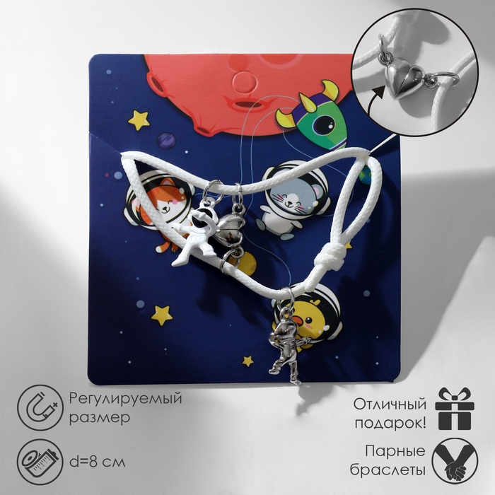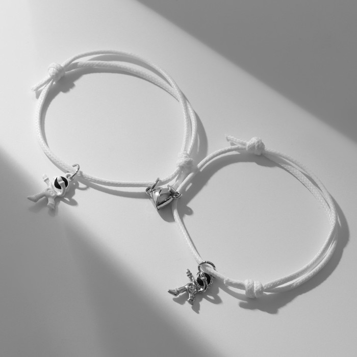Браслеты «Неразлучники» на магните, космонавты с сердечком, цвет белый, 8 см
