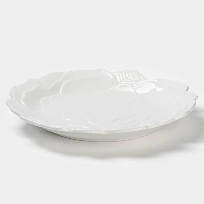 Тарелка фарфоровая обеденная Magistro «Роза», d=22,5 см, цвет белый