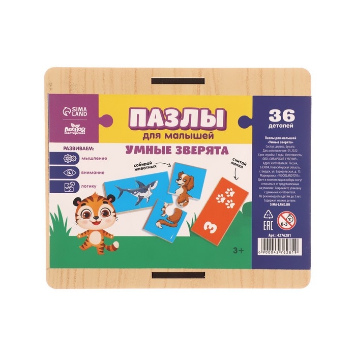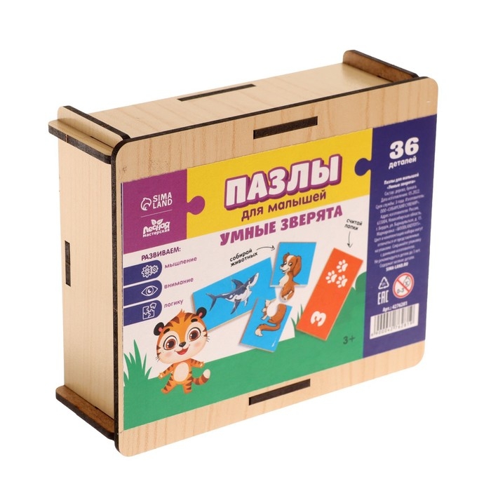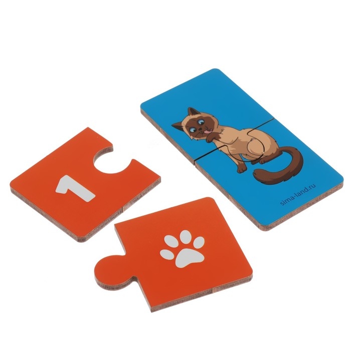Идеальный вариант первых пазлов для малыша!Начните с изучения животных. Соедините две половинки пазлов и получите зверька. Спросите малыша кто изображён на картинке. Переверните детали и вместе с крохой выкладывайте плашки таким образом, чтобы цифра на следующей соответствовала количеству лапок на предыдущей.