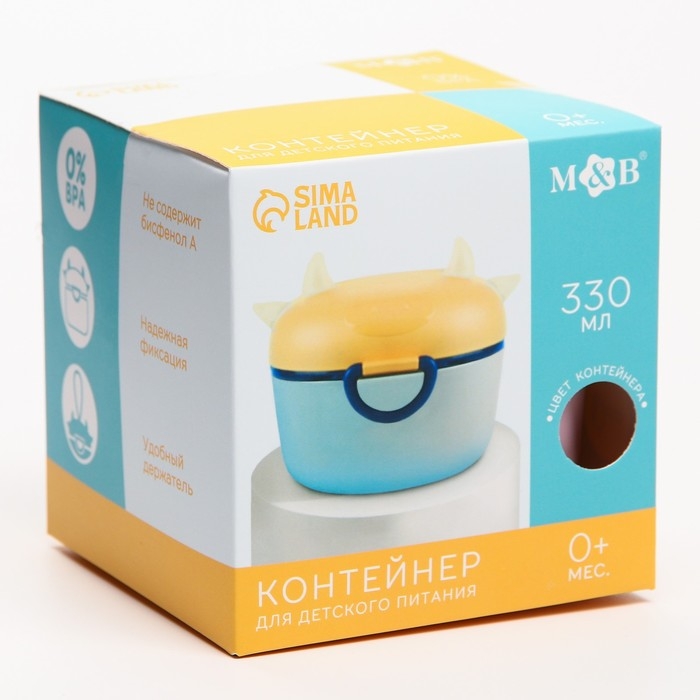 Контейнер для хранения детского питания 450 мл., с ложкой, цвет голубой