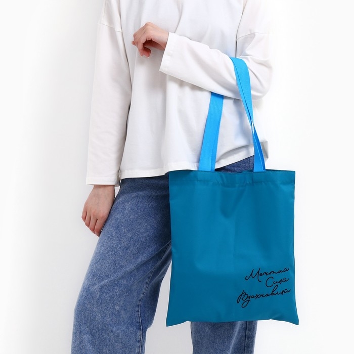 Шопер «Мечтай Сияй Вдохновляй», 35 х 0,5 х 40 см, вышивка, синий