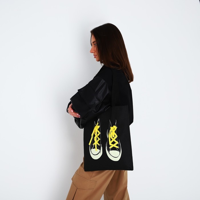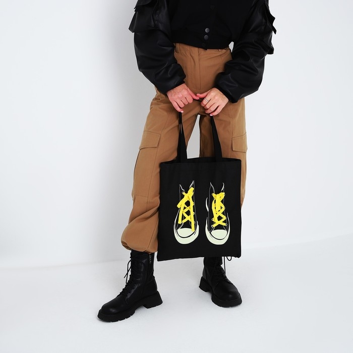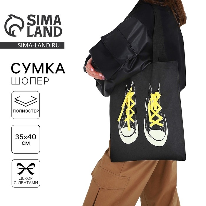 Шопер «Кеды», 35 х 0,5 х 40 см, с лентой, чёрный