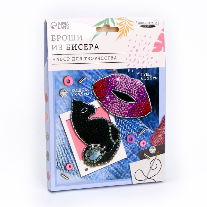 Вышивка бисером. Брошь «Кошка и губы», набор для творчестваа