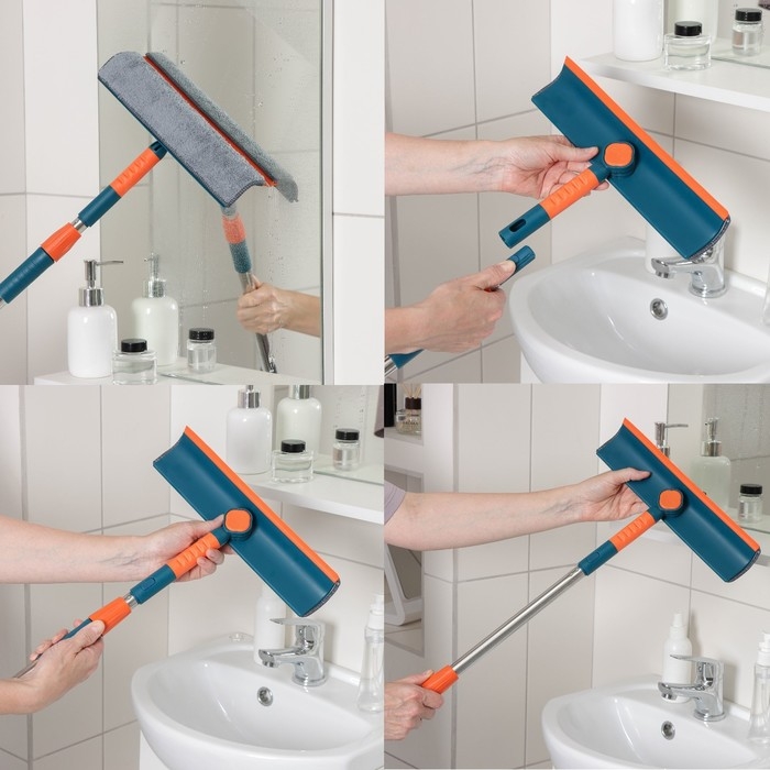 Щётка для окон Доляна, телескопическая ручка 54(86) см, поворотная головка, насадка из микрофибры 14×16 см, цвет синий