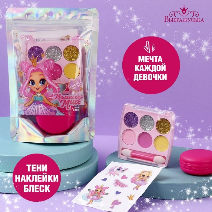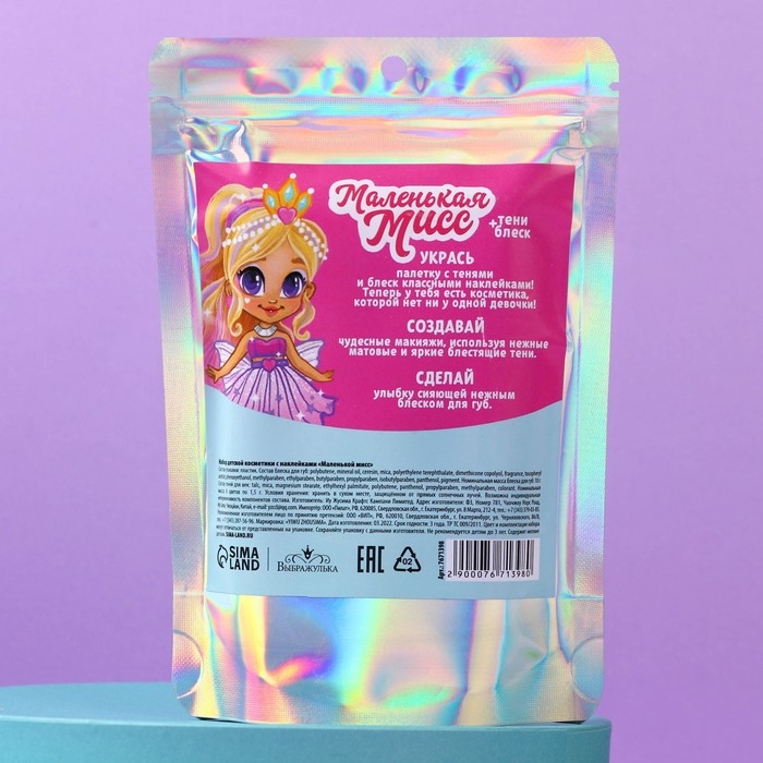 Набор детской косметики с наклейками «Маленькой мисс», тени, блеск для губ