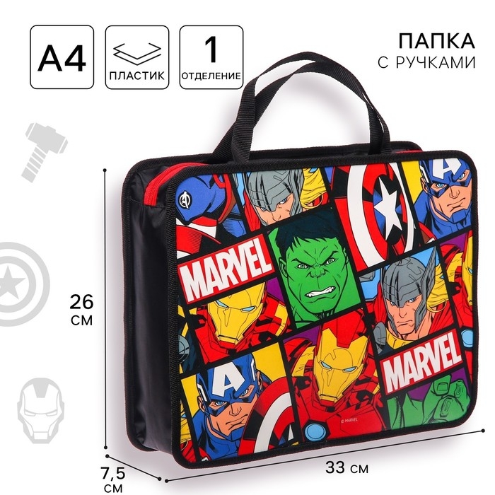 Папка пластиковая с ручками А4, на молнии, 75х330х260 мм, Мстители
