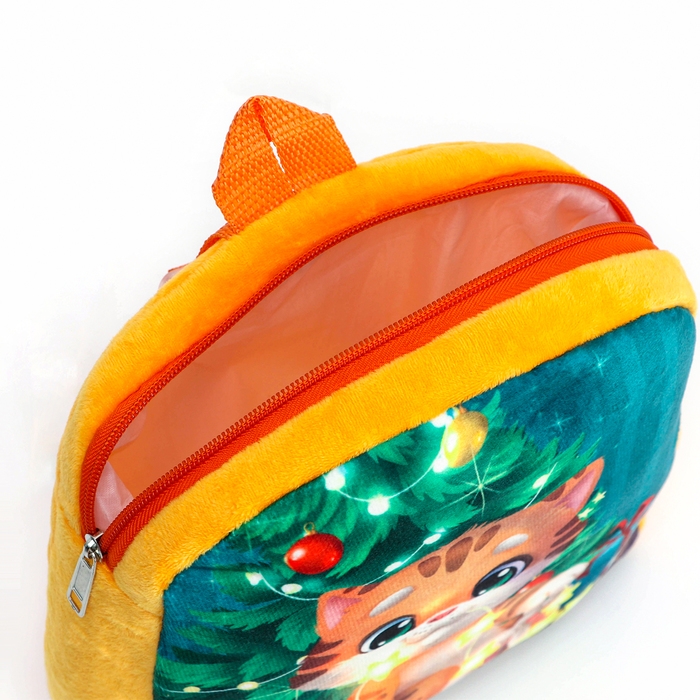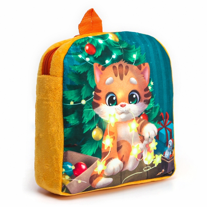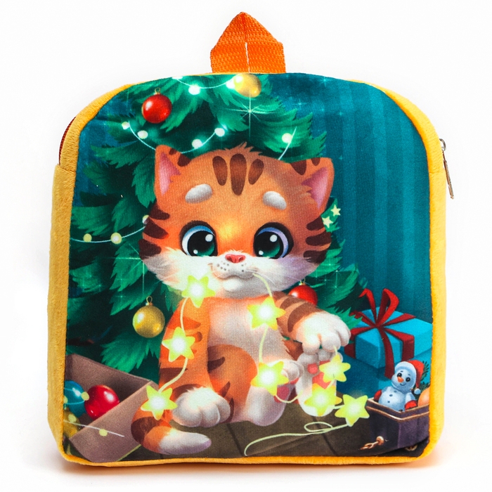 Новый год! Новогодний плюшевый детский рюкзак «Котик у ёлки», 26 × 24 см