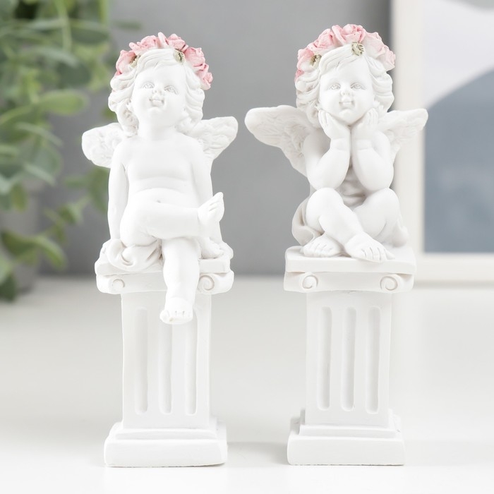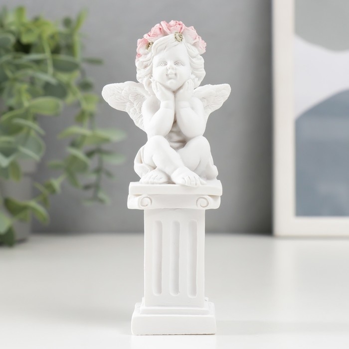 Сувенир полистоун "Белоснежный ангел в розовом венке на колонне" МИКС 10,8х4,7х4,7 см
