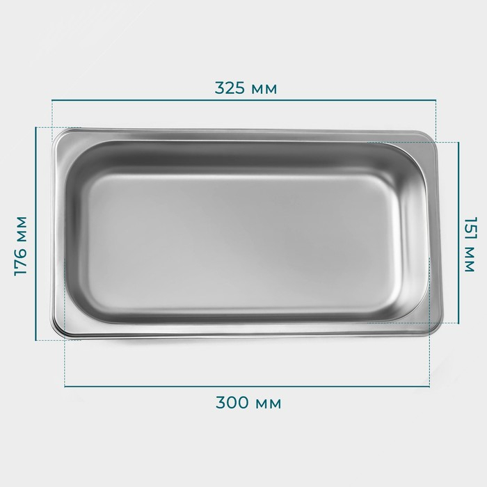 Гастроемкость 1/3 из нержавеющей стали, 65 мм, 32,5×17,6×6,5 см, толщина 0,8 мм