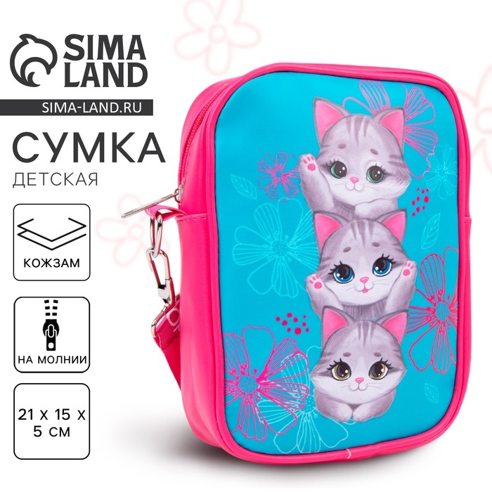 Сумка на ремешке детская для девочки «Три котенка», 15×5×21