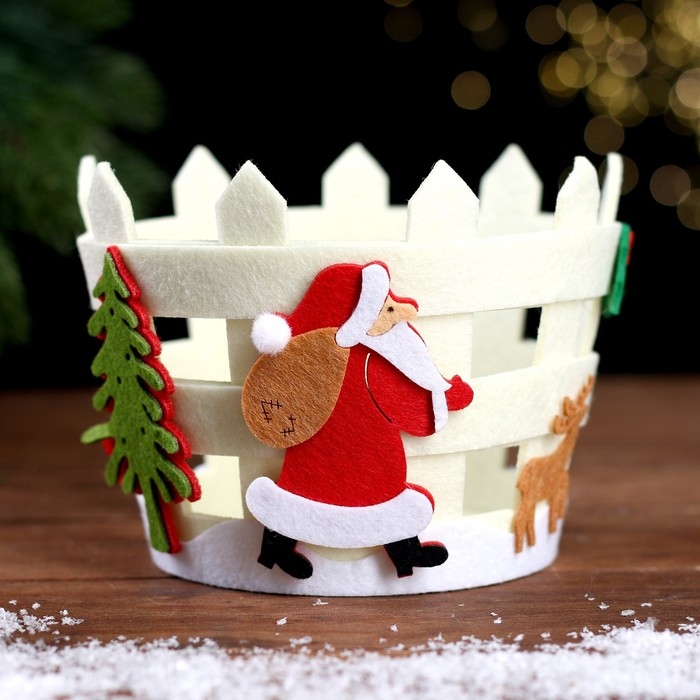 Декоративная корзинка — это универсальный атрибут для новогоднего праздника. Корзина сделана из фетра.