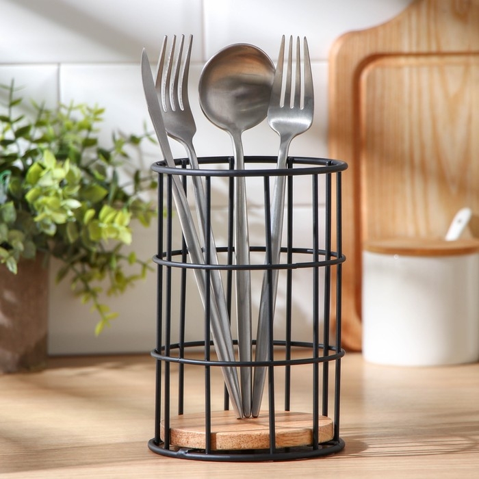 Сушилка для столовых приборов Доляна «Эстетика», 11,2×11,2×16,5 см, цвет чёрный