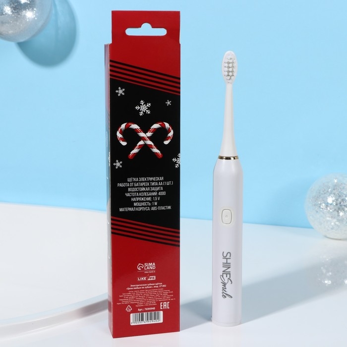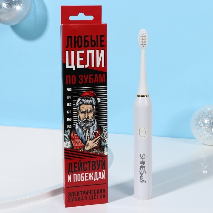 Электрическая новогодняя зубная щётка «Новый год: Цели любые по зубам», 3 насадки, вибрационная