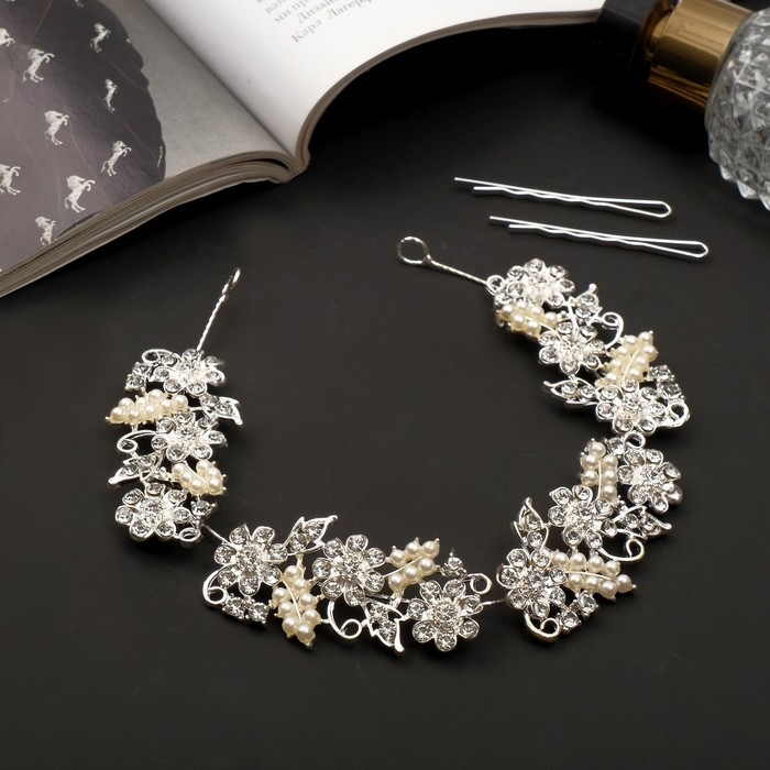 Аксессуар для волос "Альба" ромашка, 23.5х2,5 см, серебристо-белый
