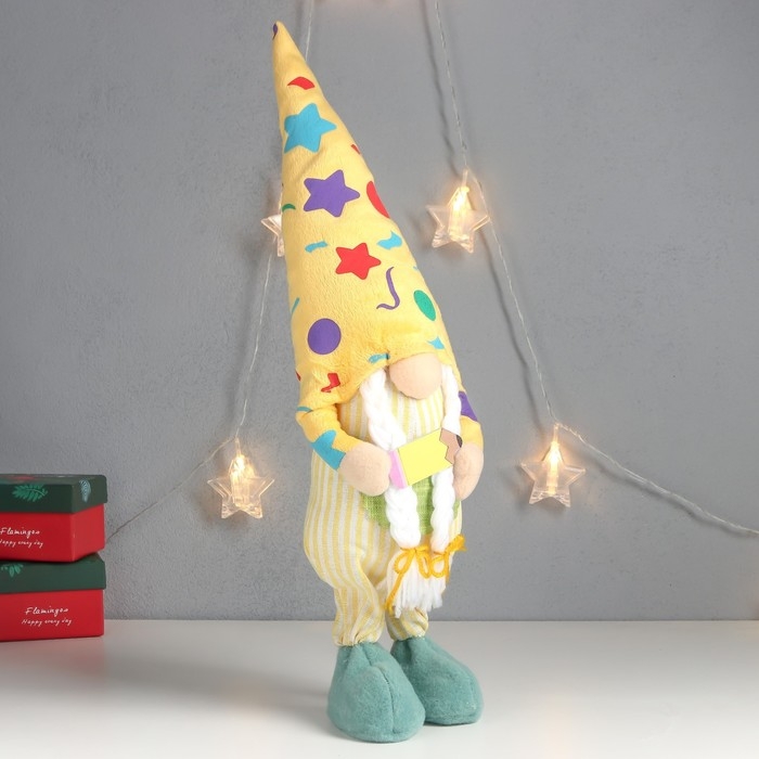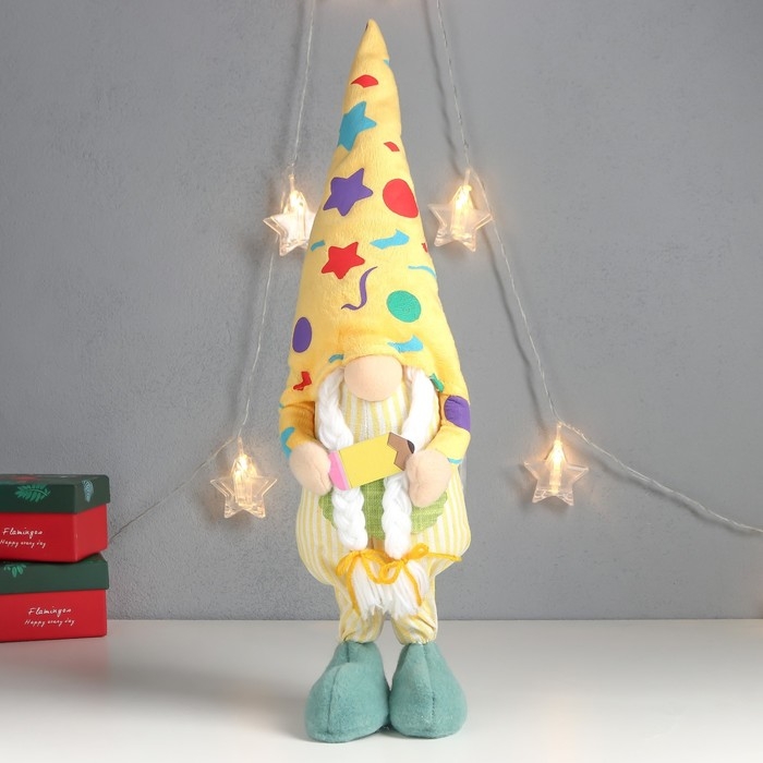 Кукла интерьерная свет "Бабусечка в ярком наряде, с карандашом" 52х13х12 см