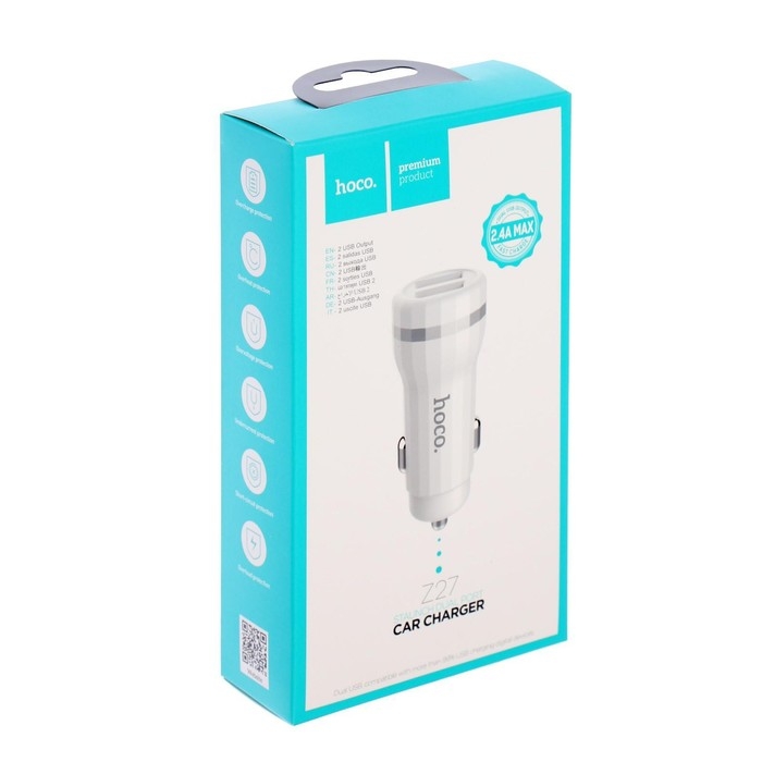 Автомобильное зарядное устройство Hoco Z27, 2 USB - 2.4 А, белый