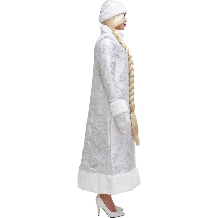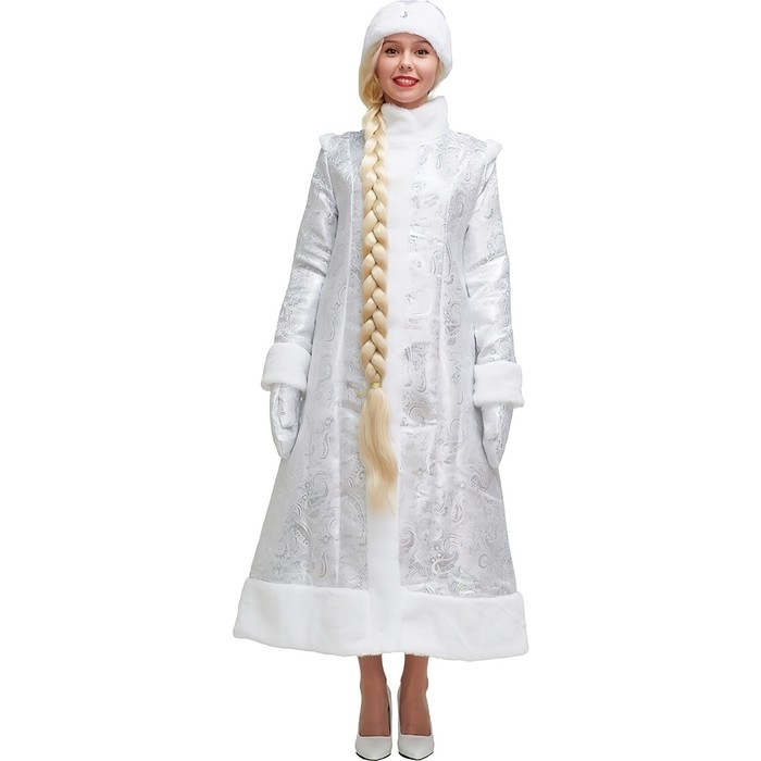 Карнавальный костюм «Снегурочка», шуба из парчи длинная, цвет серебристый, р. 50
