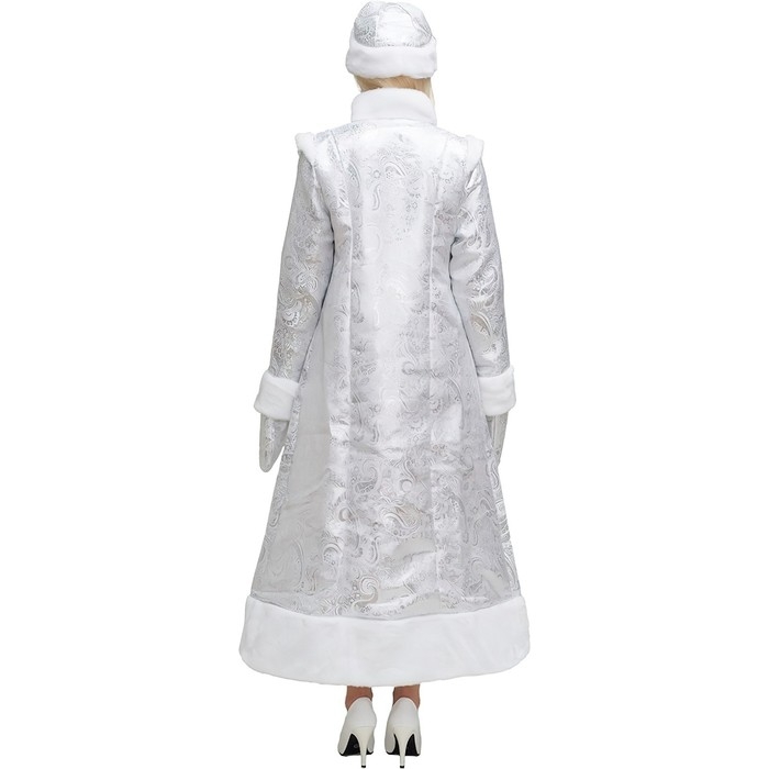 Карнавальный костюм «Снегурочка», шуба из парчи длинная, цвет серебристый, р. 52