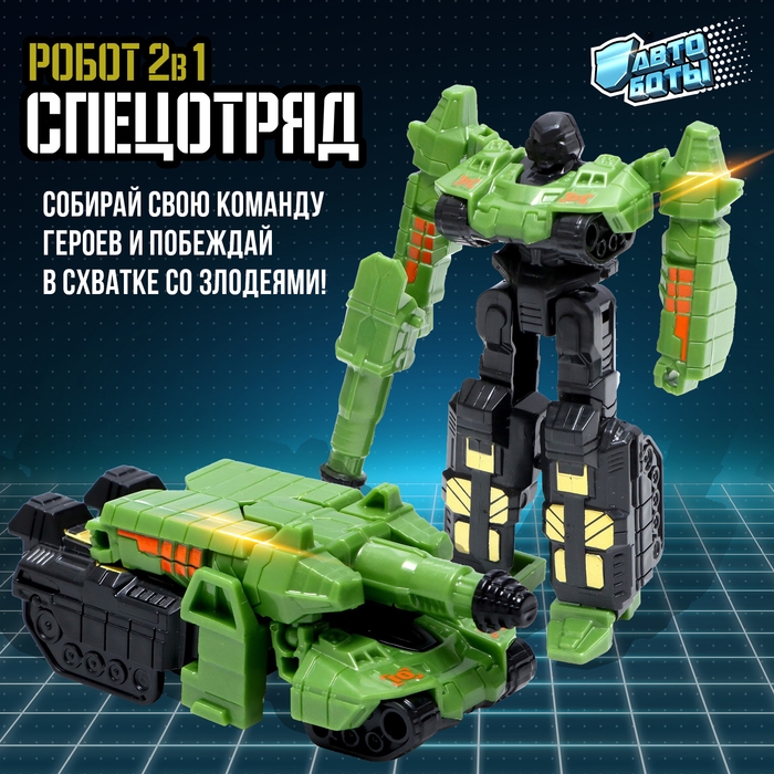 Робот с трансформацией — игрушка 2 в 1. Её можно за несколько шагов превратить в танк. Процесс трансформации происходит плавно и без усилий, что позволяет ребёнку легко трансформировать робота, подстраиваясь под игровой сюжет.