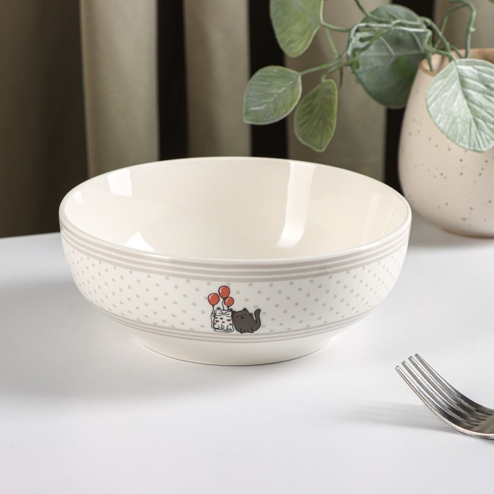 Салатник Доляна «Уютные коты», 600 мл, d=15,5 см, цвет белый