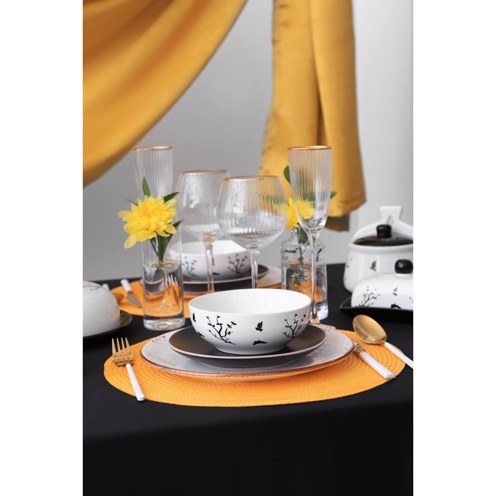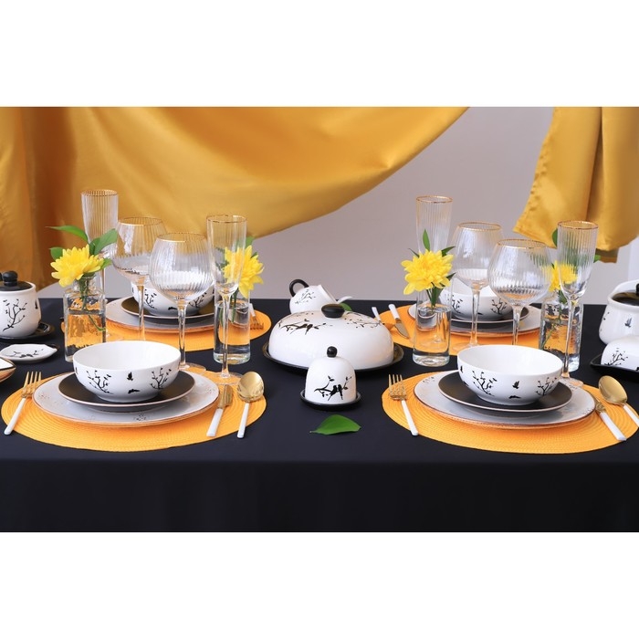 Посуда сервировочная Доляна «Весенний вечер» изготовлена из качественного доломита. Предметы выполнены в чёрно-белых тонах, поэтому они подойдут практически для любой сервировки разных стилей, а также с лёгкостью украсят интерьер вашей кухни.