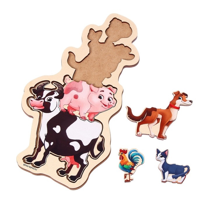 Рамка-вкладыш «Ферма» познакомит малыша с животными и поможет потренировать полезные навыки.