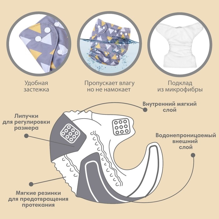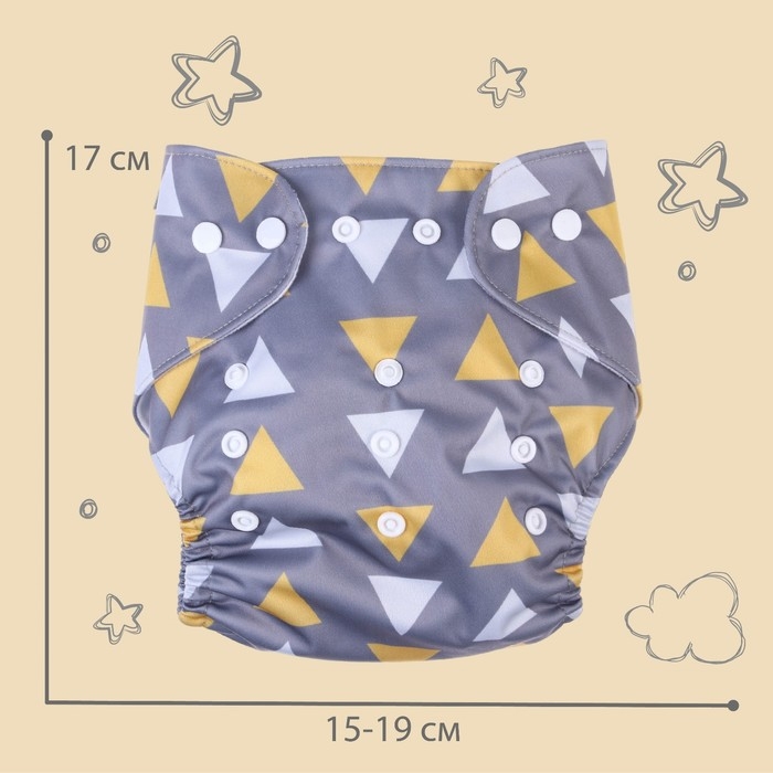 Многоразовый подгузник «Треугольники», 3-15 кг, цвет серый, Крошка Я